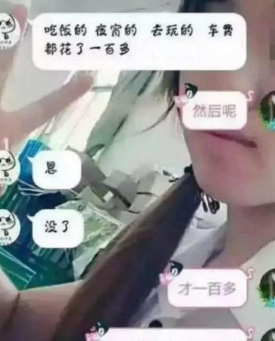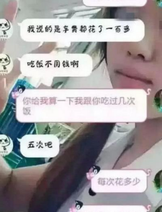 最让人想笑的是最后女生问说出去吃了几次饭的时候,男生十分坦荡的答了五次。然后女生很是嘲讽的回击说每一顿最多就十块钱吧。小编我看到这里是真的服了,十块钱大概是去的学校旁边的小摊子吃的吧?不过聊天记录也只截取了一半,接下来男生是怎么说的我们也无从得知。