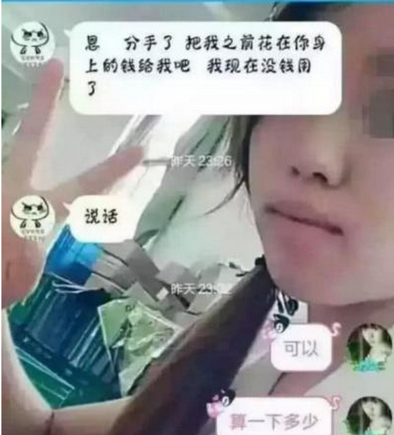 图一可以看到男生让女生把之前在一起的花销算清然后还给他,女生也是十分的爽朗的答应了。虽然分手后跟前任算钱这是一种非常无语的行为,但是女方能够答应给钱小编我觉得也是挺好的。