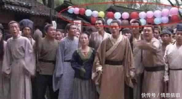 前面一群穿着古代衣服的老百姓,后面却挂着如此五颜六色的气球,莫名有一种时空混乱感啊!