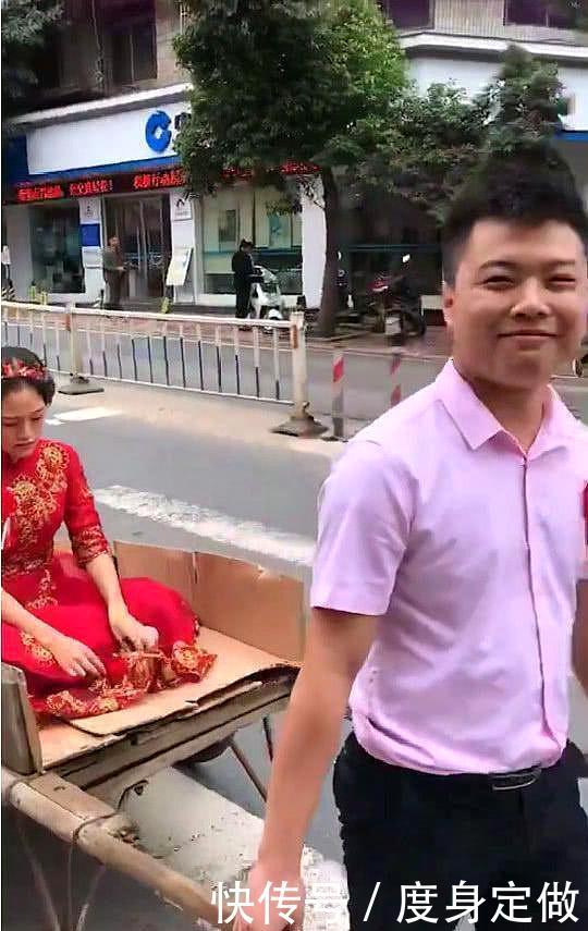 这就让大家感到非常疑问了,这是新郎那边的一个风俗习惯呢?还是自己想出了这么一个奇葩的想法呢?可是从照片中来看,这位新郎全屏的享受呀,非常的开心,还对镜头露出微笑,可怜的是这位新娘了,不但没坐上豪车,反倒坐在了板车上面,而且被新郎拉到了这么多人的马路上来,从而被不少的路人一直看着,这让新娘心里怎么想呢?女人都是把婚礼视为最重要的一部分,毕竟结婚就这么一次,一定要好好筹备的,可是没想到如今却弄成了这样,这位新郎还真是不替自己的媳妇想一下呀。