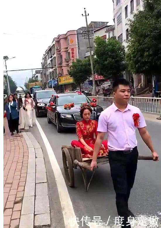 世界之大,无奇不有,在当今这个社会上,每天都有一些有趣的事情发生,虽然这些事情在大家眼里也不足挂齿,但是生活中没有了这些事情的话,还真觉得没什么意思,多亏了这些有趣的事情,从而使我们的生活变得更加丰富多。今天小编要给大家分享一件有趣的事情,一位新郎结婚当天, 竟用“板车”拉新娘在马路上走,结果后边一看全是豪车,此时这位新娘的感受想必大家都能想象得到,我们都知道,结婚是人生多么重大的一件事情,结婚当天新郎肯定要随着伴郎开车去接新娘的,可是这位新郎的想法真够特别的,竟然在马路上公然用“板车”拉着自己的媳妇走,后边跟着全是豪车, 这让大家看了也都非常纳闷,那么这究竟是怎么一回事呢?