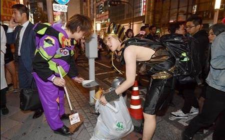 网友“dre…”:当时世界杯的报道夸赞(日本观众)看完比赛后观赛者都把垃圾捡走了。要是参加万圣节游行这些人也能像他们学习就好了。