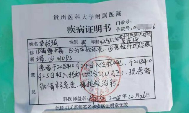 其中章枝强的情况最为严重,24 日上午,医生将他直接转进重症监护室,换血一次需花费 3 万左右,进行了数次血浆置换。可是他还是没能挺过去,在 27 日凌晨去世了。
