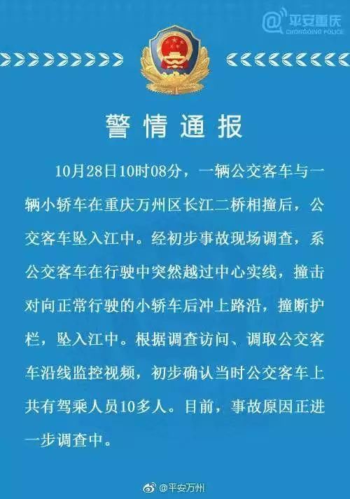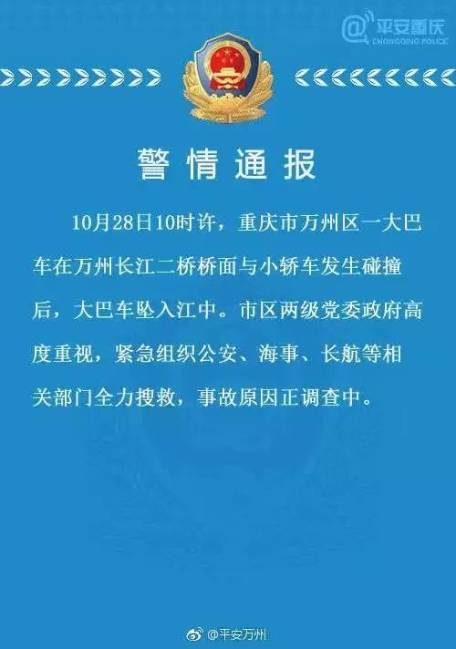 当时,警方在案发两个小时之后通报说了是小轿车与大巴车发生碰撞,而后大巴车坠入江中。