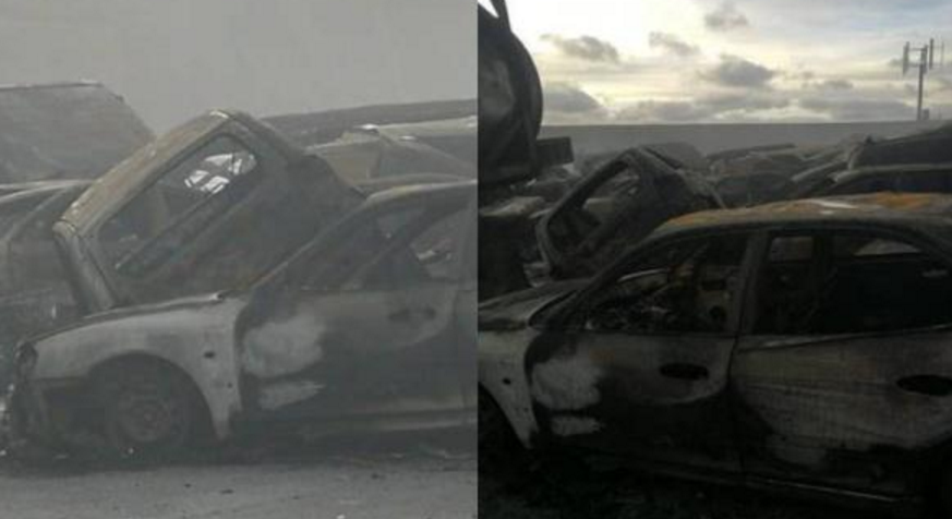 港口的两个停车场内停满了数百辆出口车辆,准备出口到中东地区,其中大部分都是崭新的玛莎拉蒂豪车。结果价值上千万美元的豪车几小时内全被烧毁,着实令人心痛。