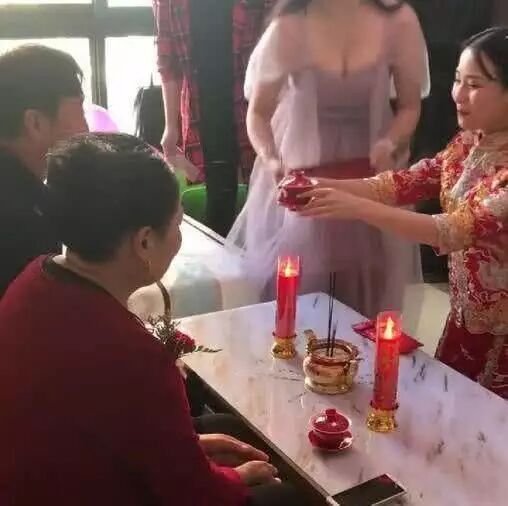 一对年轻男女在历经一段恋爱的过程后,终于喜结连理,婚礼当天,男女双方两家也进行了传统的拜茶礼,原本新娘穿着一身鲜红美艳的旗袍,打扮的十分漂亮,可是却没有引起现场宾客的注意,反而,喜娘一旁的伴娘得到了全场的关注。