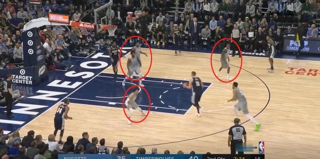 的确,森林狼的防守有目共睹,真的是随意到家了。目前森林狼阵中,只有巴特勒一人防守比较好,其他球员说实话都是半斤八两。另外,森林狼的防守体系也很不科学,可以说是形同虚设。拿这个球来说,站位明显就有问题。虽然说约基奇将唐斯引出了内线,但是其他球员基本都是看着对手在那里发挥。如果森林狼以这样的防守态势对阵火箭,那肯定是会被打穿的。哈登的突破,保罗的突破,而森林狼内线没有屏障,他们估计就给火箭当练兵用了。