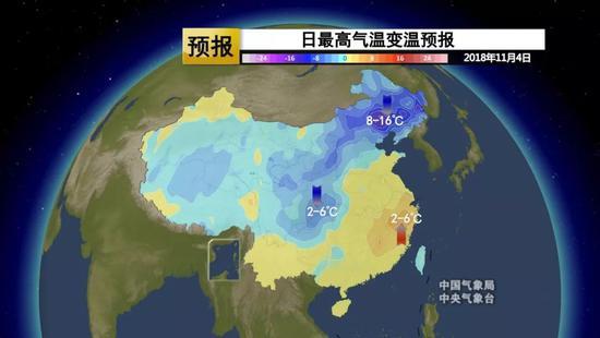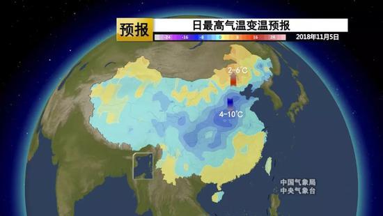 随着冷空气继续南移,11月3日夜间至4日,北方大部地区气温将下降4~6℃,内蒙古中部、东北地区中北部等地局地降温幅度达8~10℃以上!