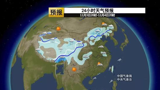 中央气象台预计,11月3日夜间至4日,新疆西部和南部、青海大部、西北地区东部、内蒙古中东部、华北北部、东北地区中北部等地将先后出现小到中雪或雨夹雪,其中内蒙古中东部局地有大到暴雪。