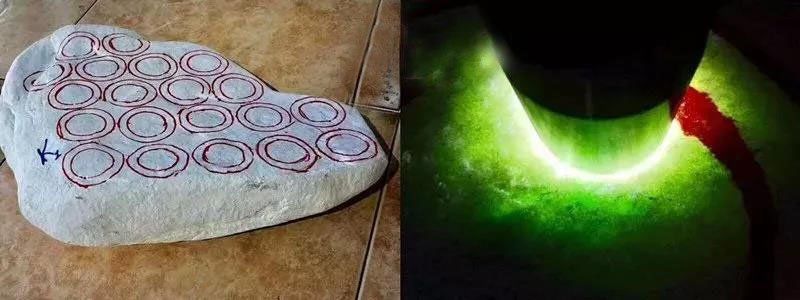在选购翡翠原石的时候,很多人都会配上一些专门的工具,其中最常见的就是强光手电筒了。