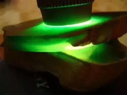 用强光手电筒,可以更清楚的观察翡翠的特征。首先我们要注意的是,在强光手电筒的光照下