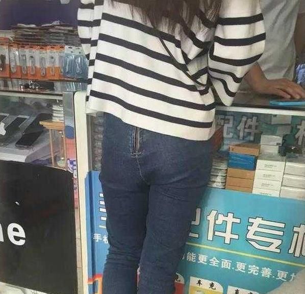 搞笑gif图:妹子,你是把你爸爸的裤子穿出来了吧,明显是男士的