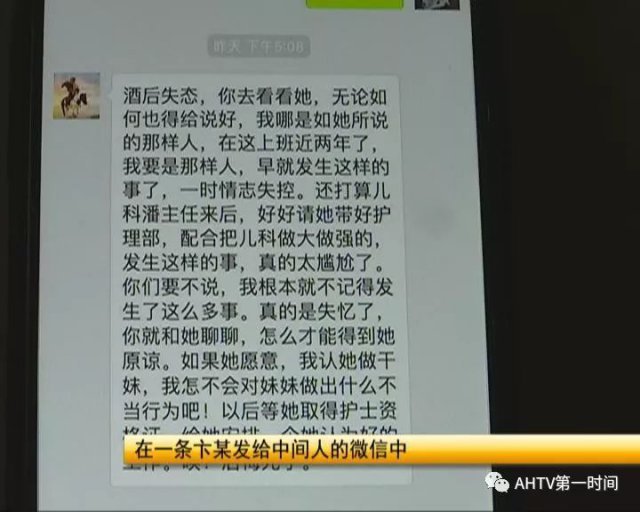 在一条卞某发给中间人的微信中,卞某这样写到:酒后失态,你去看看她,无论如何也得给说好。而小王在 10 月 17 号收到了,卞某用妻子的手机发来的一条信息," 我不知道这件事情对你造成心理影响这么大,请求你能接我电话,还是当面向你道歉 "。
