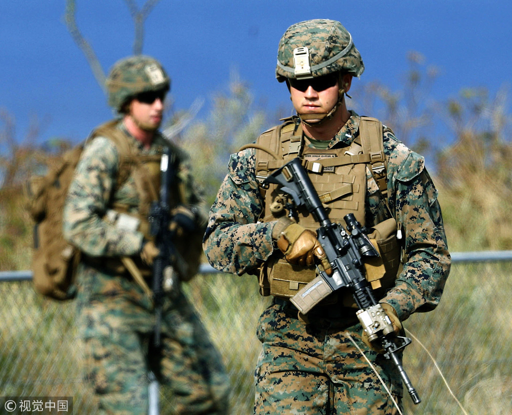 在日本进行演习的美国海军陆战队队员。(视觉中国)