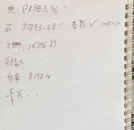 胡云爸记录的赔偿款,共81983元,由五名犯罪人共同承担。10月30日收到第一笔钱,来自犯罪嫌疑人石学和。受访者供图