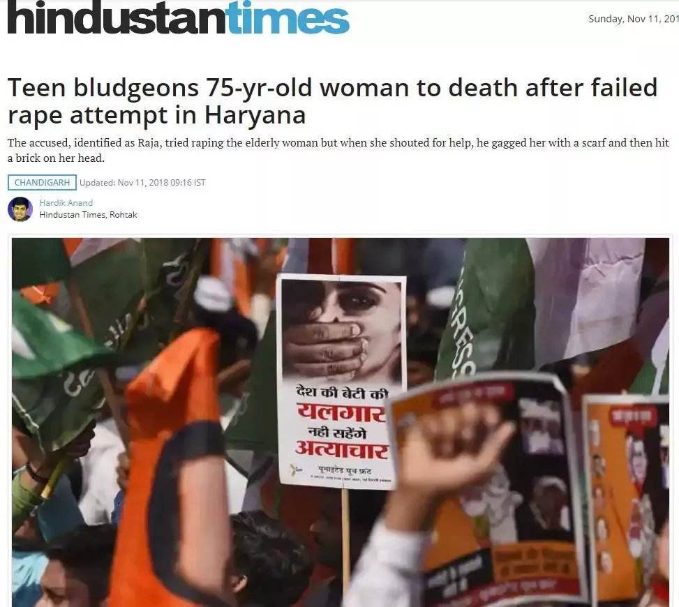 《印度斯坦时报》11日报道称,受害者是一名75岁老妇,与19岁的凶犯拉贾是邻居。每天清晨,受害人都经过他家门口取牛奶。案发当日,送奶工未及时抵达,于是受害人敲开凶犯家门,想委托他代收。没想到,拉贾竟然起了歹意,将她拖至屋内,意欲强奸,老妇随即高声呼救。担心事情败露,拉贾一记砖头将老妇砸死后抛尸。