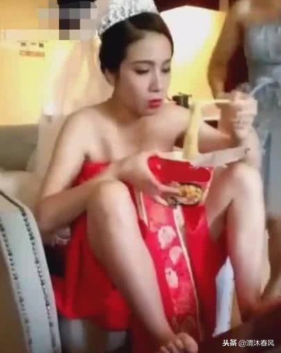 这位意外走红的“霸气侧漏”新娘子就是吃泡面才走红的,她走红的原因却是因为再吃泡面的姿势上,她并不是像我们印象中平常新娘子那样害羞,她则是非常不注意自己形象的,不管自己头上还带着头纱,也不管自己正穿着婚服,直接把裙子撩起来,露出纤细白嫩的大长腿,然后一下子脚蹬着茶几的边角,开始捧着桶泡面吃起来。从