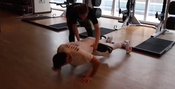 先是进行简单的人球训练,包括拉伸,双手运球,定点投篮,跑动投篮等,算是为自己一天的训练做一次热身。吃完饭后,一段时间,就是力量训练,包括各种俯卧撑,举重等大运动量训练!