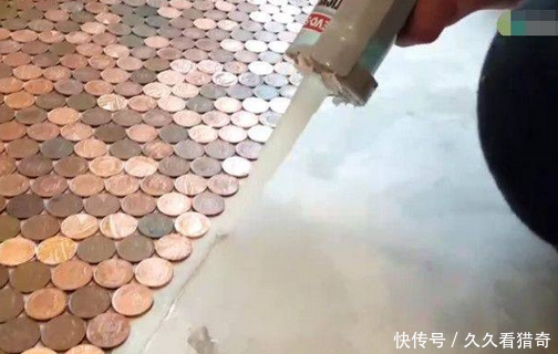 没错,就是将手头上很多闲置的硬币直接铺到地板上,这可是一个个地往地板上贴,刚开始的时候家里人百般阻挠,觉得这样的地板会很丑很不好看,更让人觉得不习惯。然而当最后将地板都铺好的时候,你会发现让你瞠目结舌的效果就诞生了,是不是足以跟金银地板相媲美?