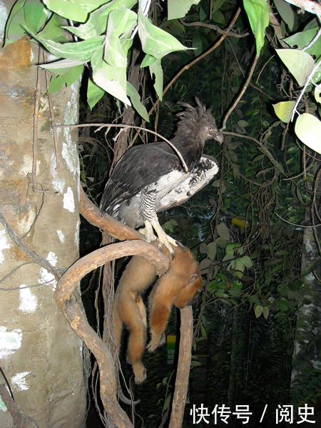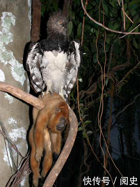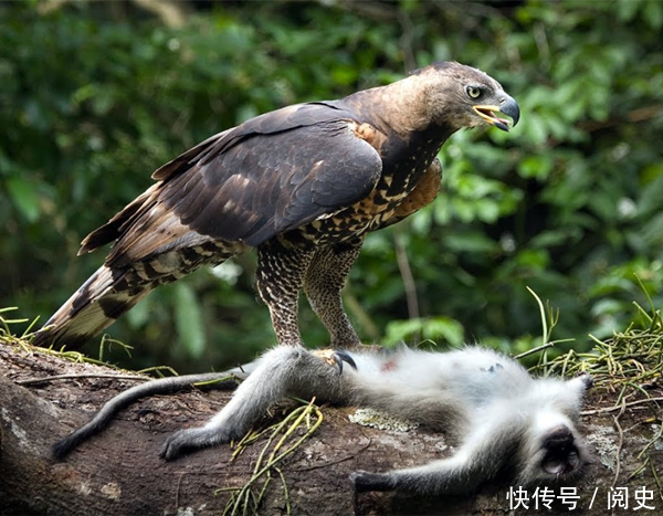 这只凶残的鸟叫做食猿雕,其主要猎物是各种树栖动物,如猫猴、蝙蝠、蛇类、蜥蜴、犀鸟、灵猫、猕猴及野兔等,在村庄附近,它们还经常捕杀狗、猪等家畜,在啄食猴子时十分凶残,所以有“食猴鹰”之称。这么近距离的看到这样的画面,真的很需要勇气。