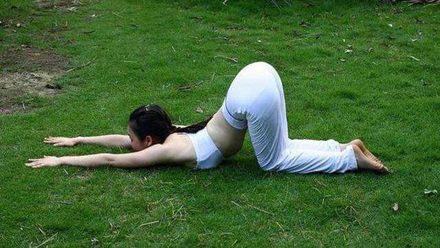 炮弹式:该姿势练习可以加强盆骨区域的血液循环,消耗腹部多余的脂肪。双腿平躺在地面上,双腿平之前伸,两手臂平放在身体的两侧,掌心向下,眼睛望向天花板。吸气,右腿弯曲,左腿保持评平伸,双手十指交叉后抱住右腿膝盖,尽力向头部方向拉近。令膝盖尽量贴近胸部和腹部,然后弯曲的右腿小腿应该与地面平行。吸气,用腹部的力量让头部抬起,同时也让背部离开地面,鼻尖贴在膝盖上。呼气,使上身和头部落回地面,然后弯曲左腿与右腿并拢,两手抱出小腿,将双腿压向胸部,向上抬头,面部紧贴在双腿膝盖上。反复了练习3次。