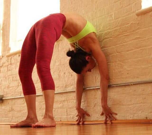 前屈背部伸展式:该体式看似像跪在地面的舞蹈姿势,在拉伸腿部肌肉的同时,也在塑造舞蹈气质,使得背部更加