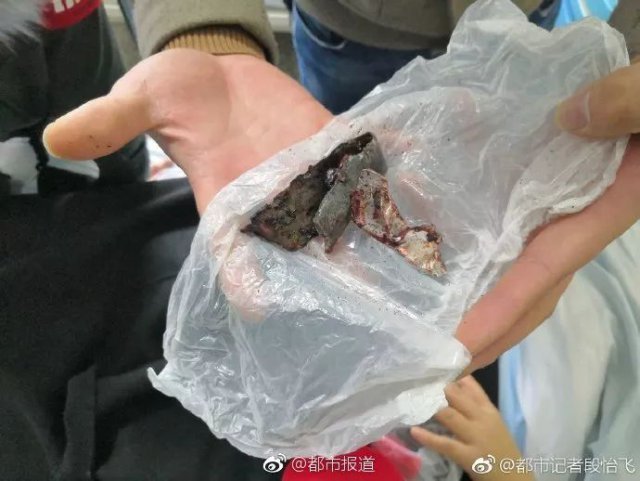 在伤者腿中取出的爆炸残片。