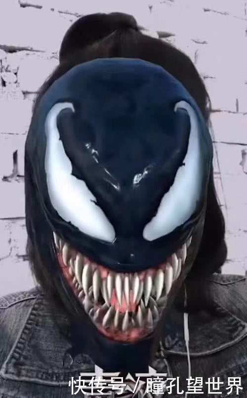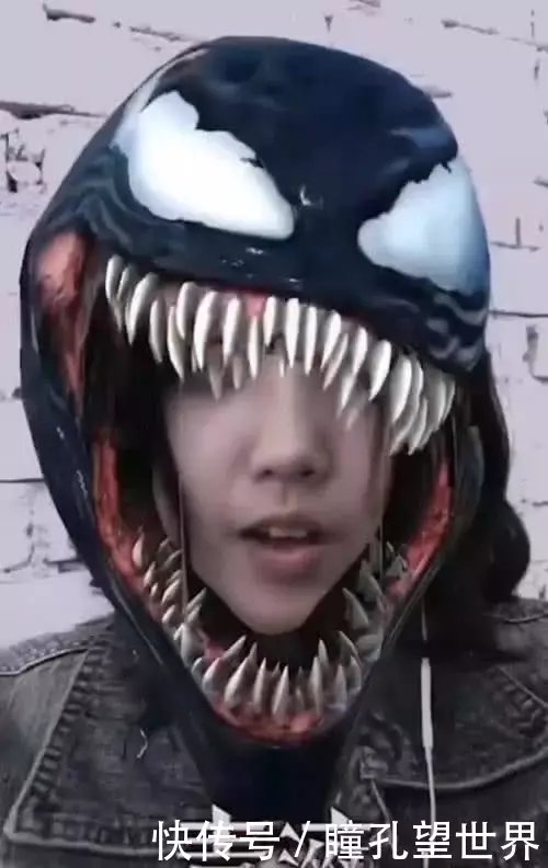 在画面中,我们看到的这位小姐姐因为玩毒液特效而在网络上走红了,特效做的非常逼真,把这个小姐姐整张脸都盖住了,开始的时候根本就看不出来这是一个小姐姐,不过电影里的毒液也是这样的。