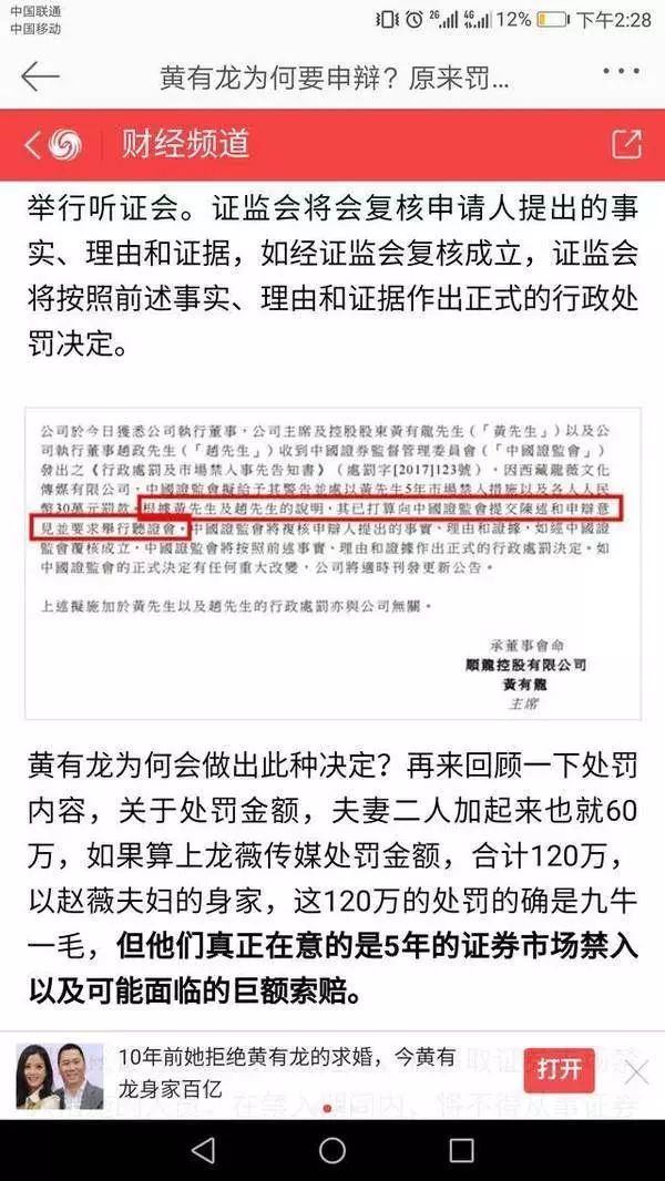 就在去年,证监会拟决定对黄有龙、赵薇夫妇等给予警告,并分别处以30万元罚款,采取5年证券市场禁入措施,然而事情并没有到此为止,据悉,赵薇夫妇两人以空壳公司收购上100亿上市公司,空手套白狼,同时据说前不久的哥哥离婚和此事件有关,哥哥赵健和嫂子陈蓉离婚,最后分给陈蓉5.2亿元!