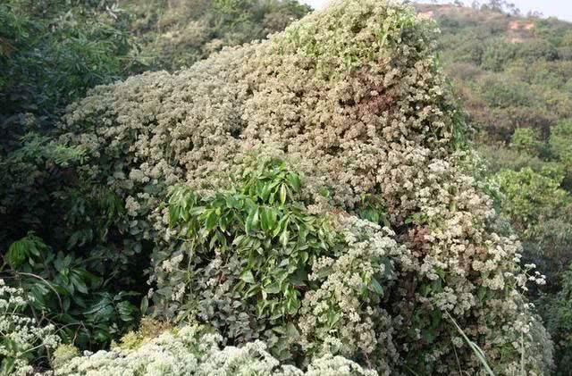 薇甘菊是一种藤本植物,藤本植物都会爬,薇甘菊自然也不例外,而且如果哪种植物被薇甘菊“盯”上的话,那么它就只有死路一条了。薇甘菊会攀附乔木或者灌木植物,在攀附过程中它会重压植物冠部并且迅速生长将整株植物覆盖。这些被覆盖的乔木或者灌木在一段时间无法进行光合作用后,就开始渐渐枯萎,渐渐死去了。