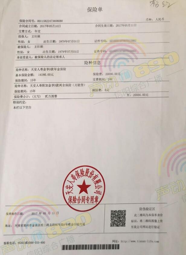 手续费!这究竟怎么回事?原来王女士在银行办理的是一张保险单,天安人寿的保险单,2万元存款变保单。