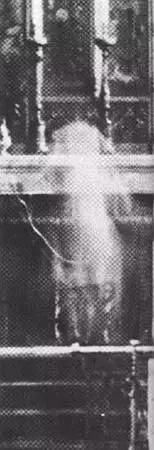 这是在教堂祭坛前拍摄的,照片上有一个半透明的人形,似乎穿着教士袍