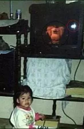 一对夫妇给宝宝拍照,当把电视关掉后就出现了这张脸。