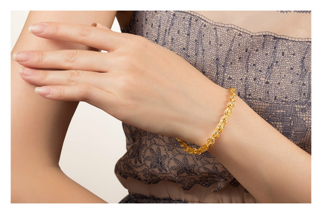 第二个款式是雕刻精美的手镯,很多人可能会很奇怪。雕刻精美,不是很好嘛。对于黄金首饰来说,过于精美,容易损耗。很多雕刻精美的手镯,都是镂空的设计,看起来很精美。