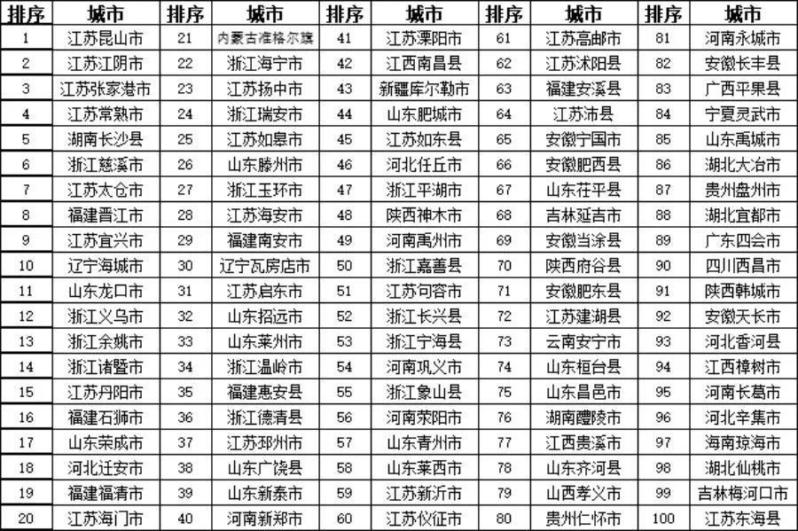 [分享]中国"百强县"名单公布:一个县级市,可以强到什么地步?