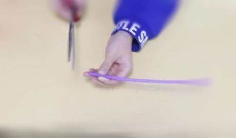 我们一手拿吸管,另一只手用剪刀剪取吸管的一小部分,然后将这一小部分从中间剪开