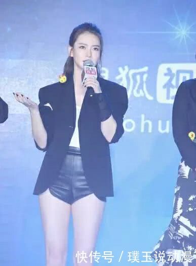将头发扎起来的戚薇看起来十分清爽干练,上衣是西装的装扮看起来帅气不失俏皮。只是这下半身的黑色短皮裤让戚薇整体的装扮看起来有种怪怪的感觉。