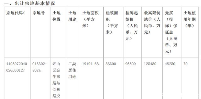 这块地在深圳坪山(见下图),土地面积1.9万多平米,未来建筑面积8.63万平米,其中至少配建人才住房15290平方米,还有商业、幼儿园等。土地转让采用“单限双竞”的办法以挂牌方式出让,即:限成交地价、竞成交地价和人才住房面积。