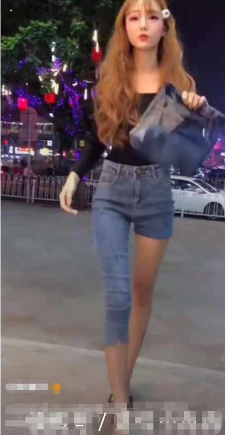 我们可以看到她身穿黑色的上衣,下身穿一条蓝色的牛仔裤,不过这条裤子非常的怪异,一条裤腿2分长,一条裤腿8分长,这简直就是阴阳裤了。她向大家展示的过程,大秀好身材,不过最后这波神操作,真的是意想不到。她给左腿上又穿了一条长裤腿,变成了拼接裤。好多网友直呼这位小姐姐真是可怜了,买不起裤子!