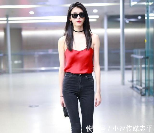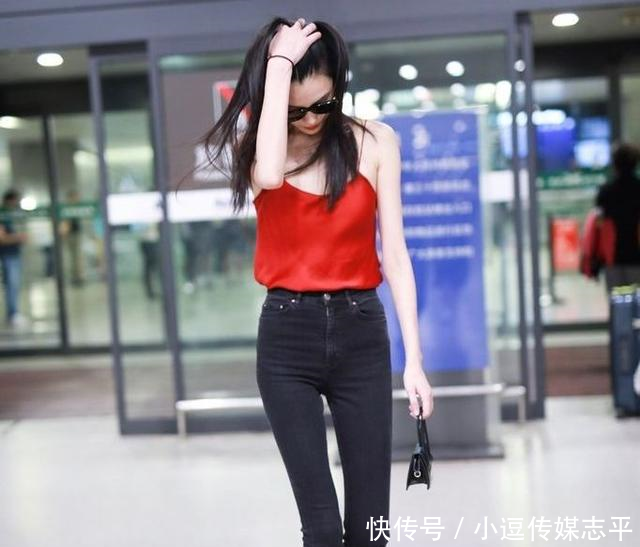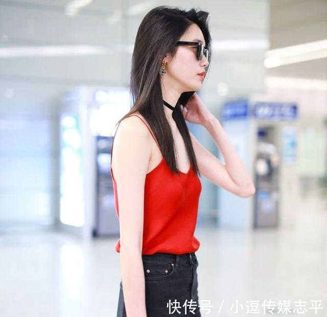 不得不说奚梦瑶真的很喜欢这样的搭配方式了,又一次现身机场时,同样还是上衣吊带搭配下身黑色紧身裤,不得不说奚梦瑶真敢穿,不过这款黑色的吊带风格和之前的那款红色的有些不一样,没有了红色的温柔和风情万种,黑色的这款则更加的朋克一些充满个性,不仔细看还以为只用了两块布遮住了重点部位呢!