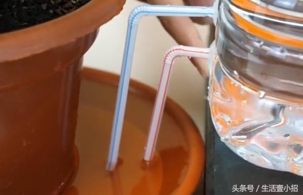 这样我们就可以利用它来给家里的盆栽浇水了,把装满水的油桶放在盆栽旁边,吸管对着盆栽储水盆,长的吸管会一直流水出来,但是当储水盆的水面没过吸管时,它就不会再流水,而当储水盆里面的水被吸收低于吸管口后他又会开始补水,非常实用的一个生活妙招,用这个方法还可以给家里宠物喂水,也是非常不错的哦