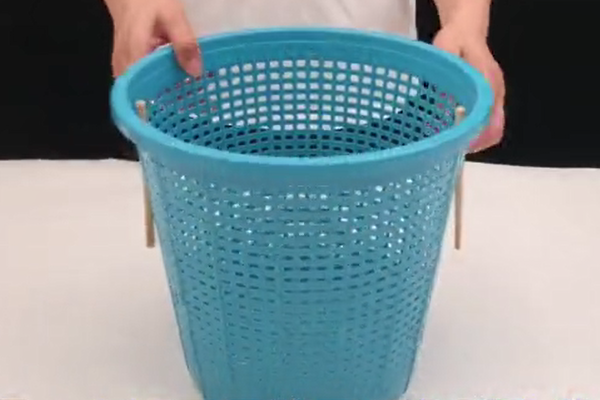 第一步:首先准备家里常用的一个垃圾桶和一根筷子,塑料袋如何废物利用就靠这根筷子了。