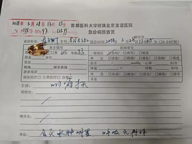 骑摩拜到达友谊医院急诊科,不知道是由于剧烈运动还是水肿,已经完全堵住了气管,自己明显感觉到了呼吸困难,有被人掐脖子的感觉。