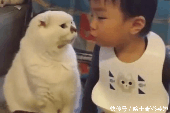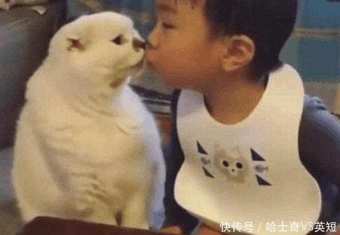这时,东子目不转睛的看着那只猫咪,不会说话的它还叫出了声,看得出来东子也非常的喜欢猫咪,小小个的他轻轻的转过头去,刚好亲到了网友家的那只猫咪,网友:奥买噶,我都没亲过它,你怎么就亲了呢?