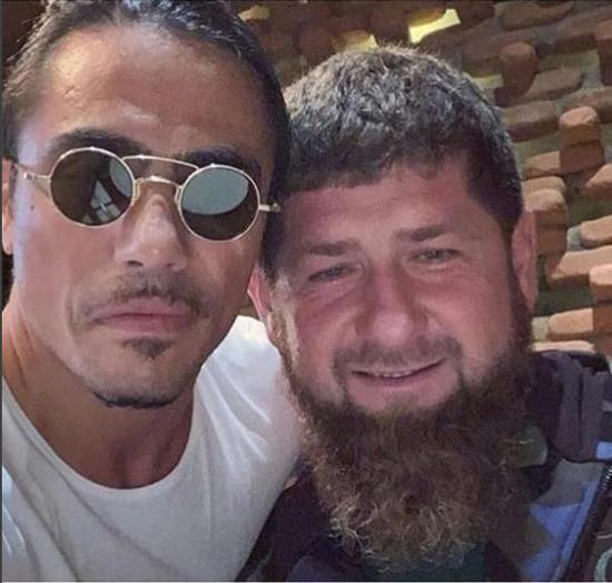 之后,这位车臣领导人还和“撒盐哥”亲切合影。
