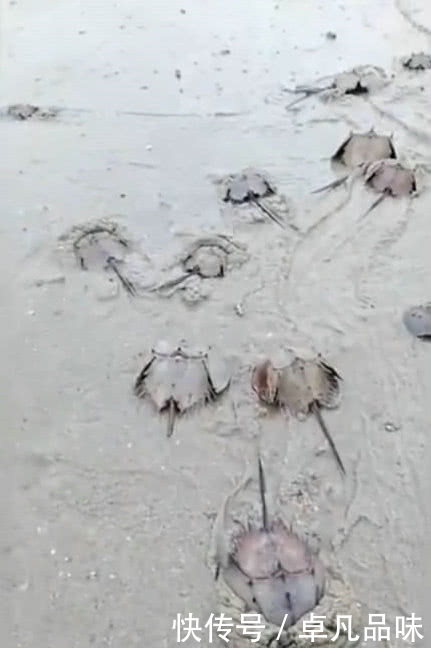 不过,鲎鱼的繁殖季节,一般认为是3-5月,这些鲎鱼可能是被海浪冲上来的..