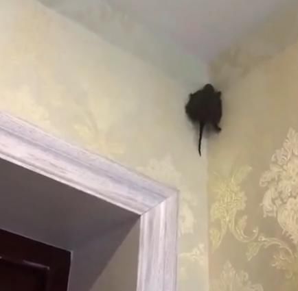 当大家看到这只所谓的“壁虎”之后,顿时笑了起来。原来这是家里养的乌龟,乍一看黑黑的确实像一只大壁虎。但是这只乌龟是怎么爬上去的,大家就不太清楚了。