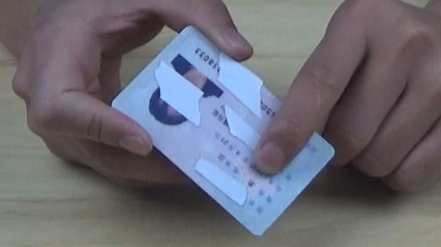 最后我可以打开手机的手电筒,然后去照射身份证的右下角,可以非常明显的看到里面有一个非常小的芯片,我们所有的信息就是被保存在这个芯片里面,而假的身份证是不会有芯片的。