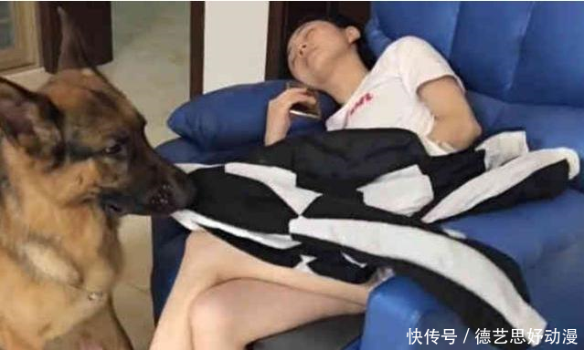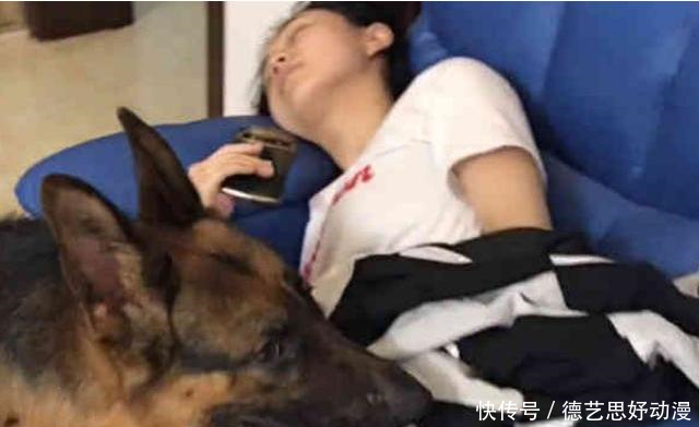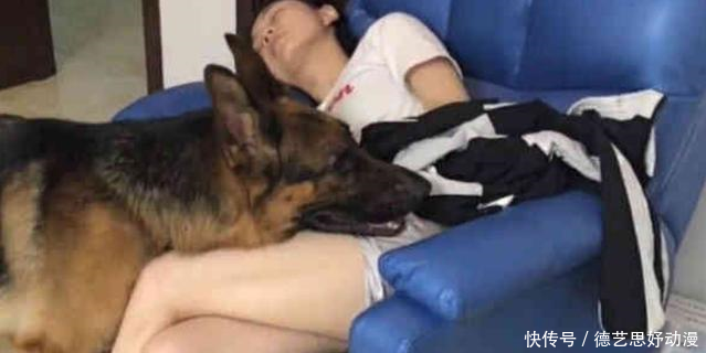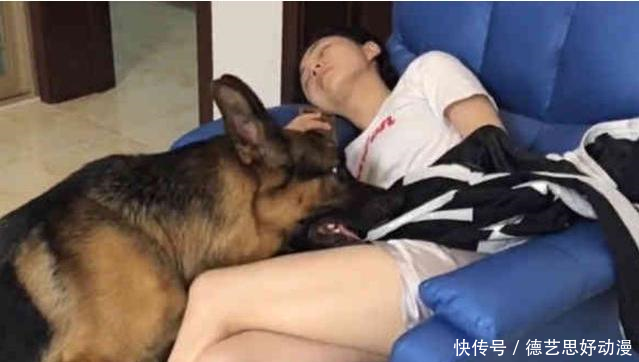 网友的男朋友,想想以前自己女朋友睡着了,而自己却浑然不知还在开心的玩着游戏,再看看现在贴心的德牧,网友的男朋友都和网友说,以后自己真的应该和狗学习了。