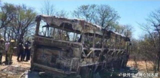 这件事情发生在津巴布韦,有一辆大巴车正开往南非方向,结果在当天晚上的时候突然发生了爆炸,导致大巴车被火海给吞没了。当时在大巴车上面有69人,其中42人死亡,剩下的27个人严重烧伤,后来被送去医院抢救了,我们可以在现场的情况上面看到,这辆车已经被烧得只剩下支架,现场是非常惨烈的。